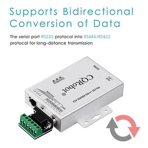 CQR1218 is a universal RS232 to RS485/RS422 bidirectional converter, designed to extend the RS232 transmission distance and the interface converter designed for the RS485/RS422 bus, which consists of a number of CQRobot independent innovation technology. It Includes built-in data collision protection control, the power supply and signal lights and inhibition of TVS transient voltages protection. In order to adapt to RS422 / RS485 with much bus wiring, it provides a terminal at port, DB9 and RJ45 physical interface, that effectively adapt to a variety of connection mode, making the bus from multiple directions to be better contacted and more convenient to be implemented. The equipment adopts the aluminum shell of sandblasting and anti-oxidation, which can effectively shield the external interference and have good heat dissipation.