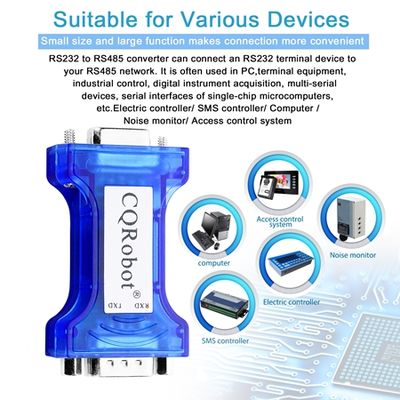 • The RS232 to RS485 converter of CQRobot provides industrial grade isolation with fairly resistant to noise. It is an optically isolated and protection type converter, separating the data lines inside the unit, this prevents noise, high voltage spikes, surges and ground-loops from damaging your computer or the equipment you have connected to the converter that can greatly improve the signal conversion efficiency, and protect the ends of equipment.